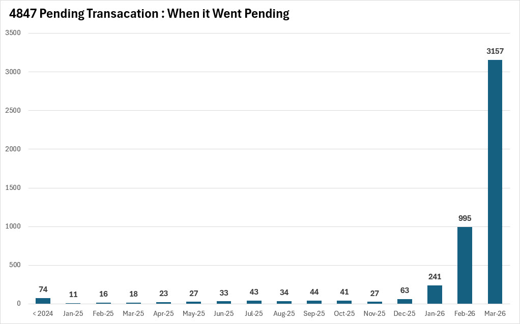 For agents working with sellers, this data makes the comps conversation more precise. The buyers under contract right now are largely recent — they made decisions based on current market conditions, not 2024 pricing assumptions. For agents with buyers still on the sideline waiting for a more favorable environment, the chart is a useful counterargument: the people who went under contract in March 2026 did not wait for perfect conditions. They acted, and they are now 4,000-plus strong in the pending column.